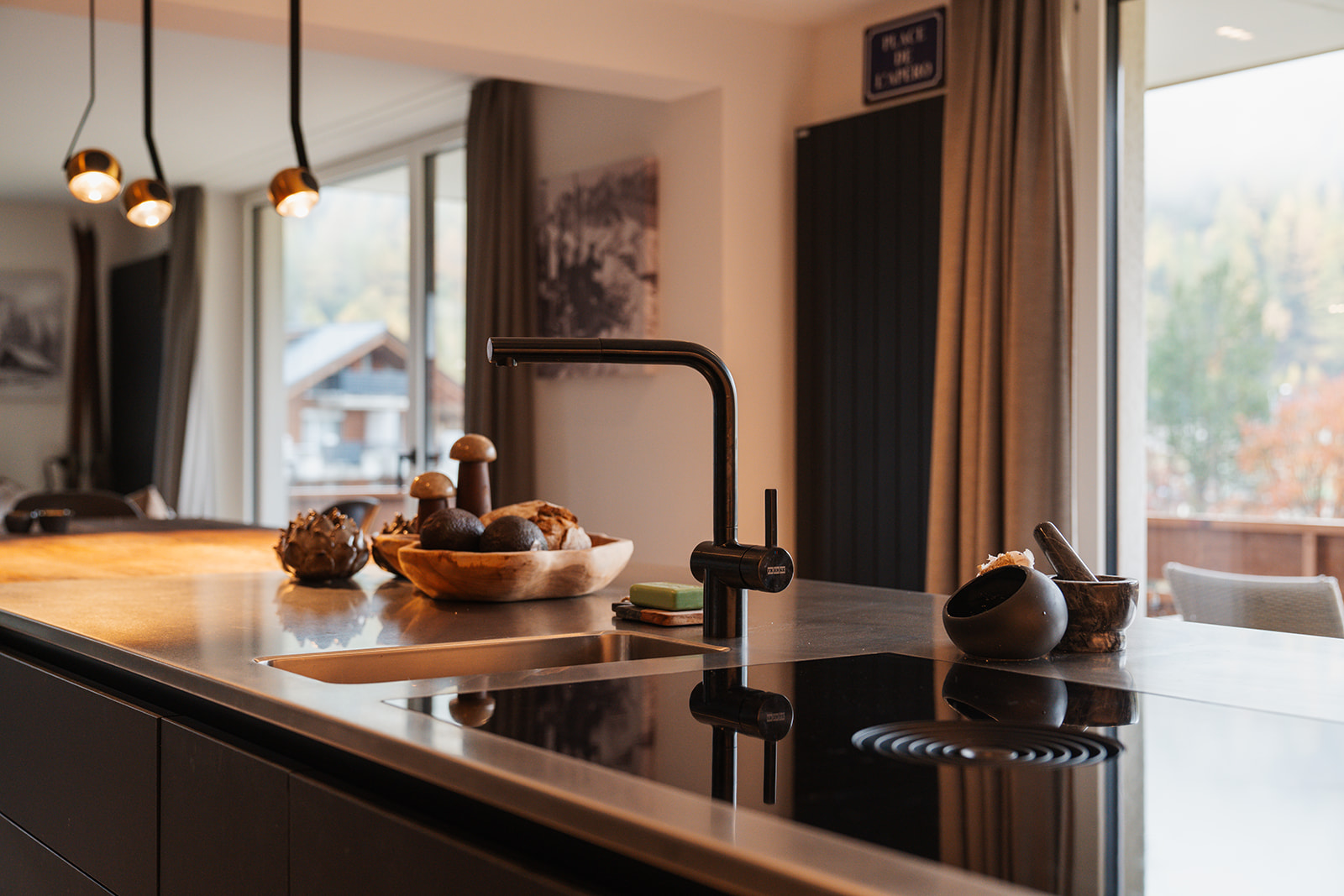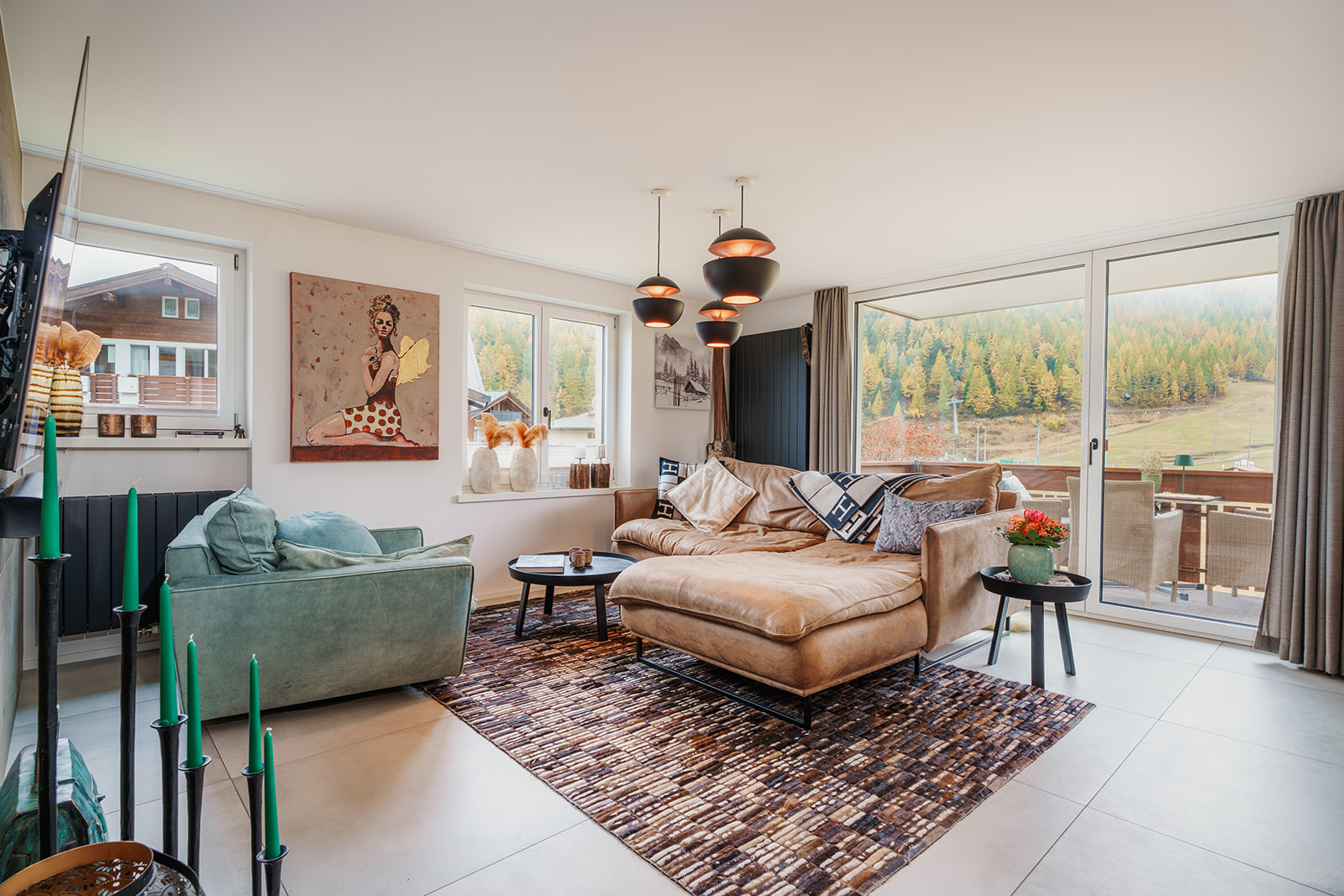 The apartment provides approximately 106 m² of living space, thoughtfully laid out with two bedrooms and two bathrooms. It has been completely renovated to a five-star standard, combining modern alpine design with premium materials throughout. Highlights include a bespoke Pollinger kitchen, high-quality finishes, and a warm yet contemporary interior that is both elegant and functional.